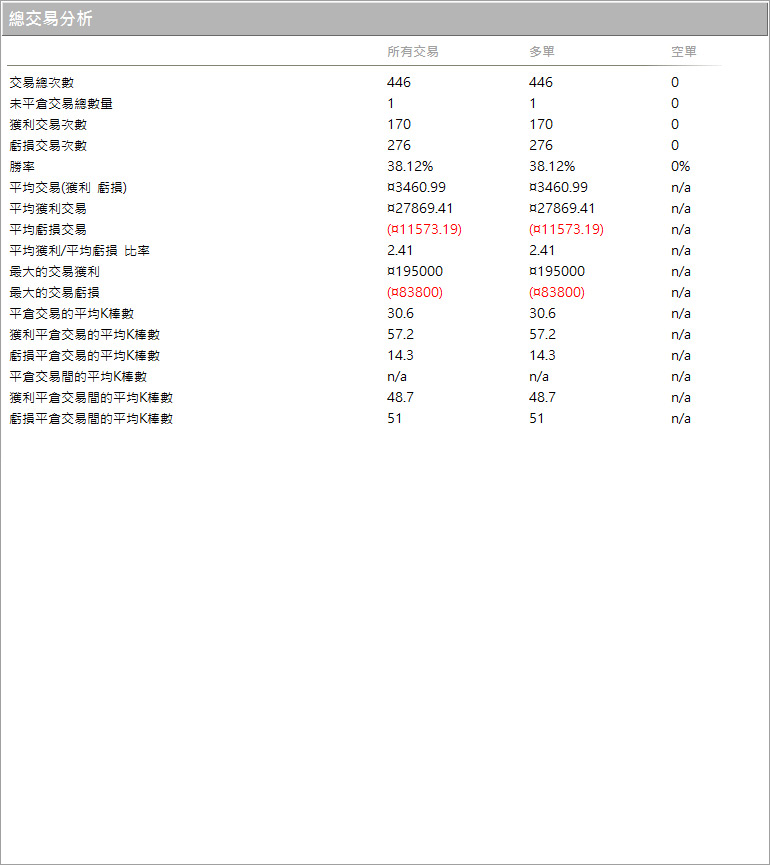 | S21Q100 | 範例策略 | 1543600 | -316000 | 4.88 | 1.48 | 35253 | 0.55 | 38% | 2.41 | 94800 | 117600 | 109800 | 589800 |