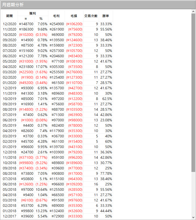 | 序號 | 作者 (策略績效圖) | 淨利 | MDD | 風報比 | PF | 月報酬 | 夏普值 | 勝率 | 贏虧比 | 追蹤一月 | 追蹤兩月 | 追蹤三月 | 20210301~20220131 |